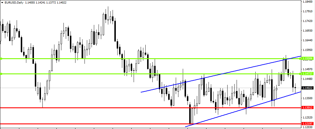 Kurs EURUSD nieznacznie osuwa się piątą sesję z rzędu osiągając najniższy poziom od 4 stycznia po tym jak prezes EBC Mario Draghi ostrzegł, że gospodarka strefy euro zachowuje się słabiej niż tego oczekiwał. Dodatkowo wciąż na parze ciążą wczorajsze dane z Niemiec, które pokazały że niemiecka gospodarka otarła się w drugiej połowie 2018 r. o recesję. Para obecnie handluje w dolnym ograniczeniu łagodnego kanału wzrostowego w którym się znajduje od listopada ubiegłego roku. Po jego ewentualnym przebiciu możliwe są dalsze spadki w stronę wsparć 1,1300 i 1,1220.
