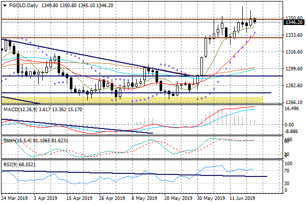 Wsparciem dla wzrostów kruszcu mogą być zapowiedzi „gołębiej” polityki ze strony banków centralnych. Po wczorajszych słowach szefa ECB oczekiwania na cięcie stóp przesunęły się na marzec 2020 r., ale to potencjalne ruchy FED, a tym samym zachowanie się dolara będzie kluczowe. Wydaje się, że komunikat po dzisiejszym posiedzeniu będzie „gołębi”, ale niewystarczająco… to może sprowokować krótkoterminowe umocnienie dolara i cofnięcie się cen złota. Prawdopodobieństwo zejścia poniżej wsparcia przy 1330 USD, jakie było wskazywane jeszcze wczoraj, nie wydaje się być jednak duże.