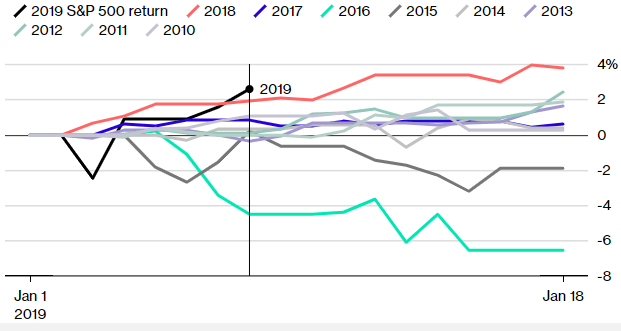 Akcje amerykańskie cieszą się najlepszym startem roku od co najmniej dekady, co dobrze wróży mocnemu w tym roku „efektowi stycznia”.