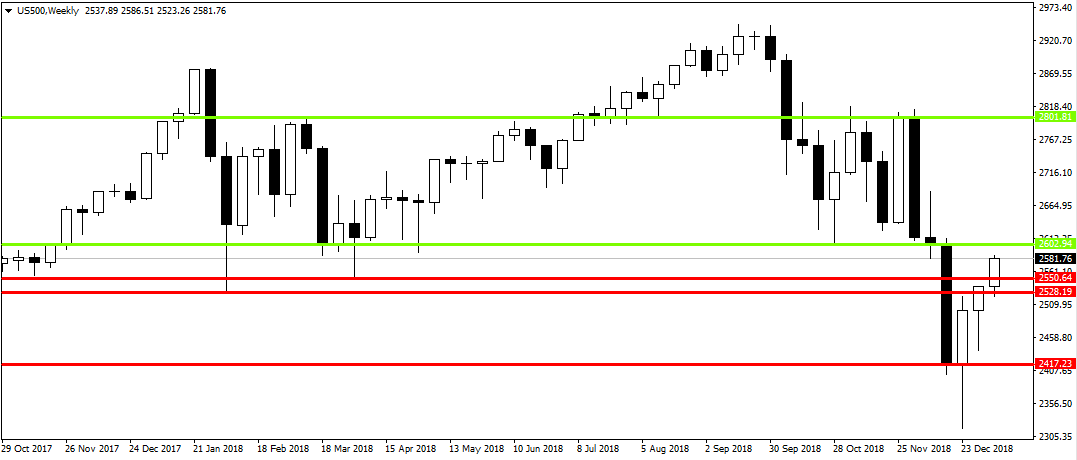 Dodatkowo dane statystyczne pokazują, że w 80% przypadków kiedy indeks S&P 500 kończy styczeń na plusie, to również cały rok kończy na plusie, ze średnio 13% stopą zwrotu. Oczywiście pozostaje te 20% przypadków kiedy powyższa reguła się nie sprawdza, czego dobitnym przykładem był rok 2018. Ponieważ na razie nie widać wyraźnych przesłanek nowej recesji w USA a spory handlowe na linii USA-Chiny w końcu zapewne zostaną rozwiązane to z pomocą gołębiego Fed-u rok 2019 może zapisać się pozytywnie dla posiadaczy amerykańskich akcji.