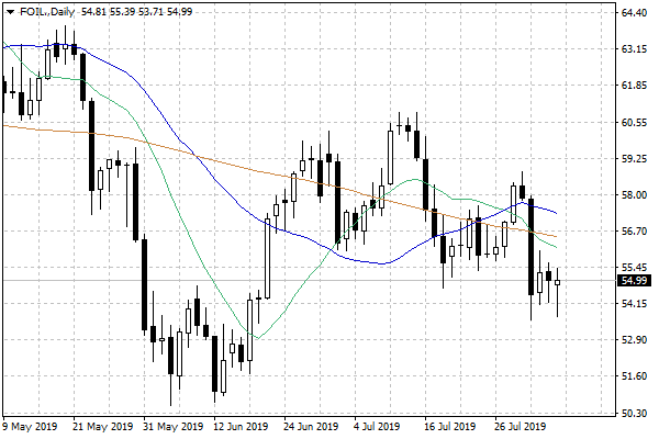 Po dynamicznym tąpnięciu notowań ropy naftowej w minionym tygodniu, bieżący tydzień na razie przynosi uspokojenie nastrojów inwestorów. Strona podażowa jest jednak silna, zwłaszcza na wykresie cen europejskiej ropy naftowej, której notowania walczą obecnie z psychologiczną barierą na poziomie 60 USD za baryłkę. W przypadku ropy naftowej WTI, po czwartkowej dynamicznej zniżce, notowania wpadły w konsolidację w okolicach 54-55 USD za baryłkę.