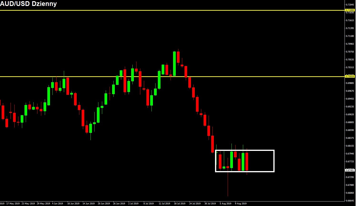 Opis pary: AUD/USD notuje dzień spadkowy. Jeśli spojrzymy na wykres dzienny, możemy zauważyć, że nadal przebywamy w konsolidacji. W długim terminie rynek znajduje się w trendzie spadkowym, ale od dwóch tygodni byki próbują wyhamować spadki i wytworzyć korektę.