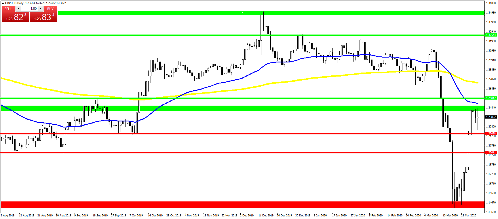 Pomysł na handel: Podobna sytuacja jak z EUR/USD. Każdy znajdzie coś dla siebie. Byki dostały sygnały zmiany trendu na wzrostowy w krótkim terminie, a niedźwiedzie cieszą się, że dostaną lepsze poziomy do sprzedaży. Pytanie, z którym trendem chcą Państwo grać (głównym czy krótkoterminowym).