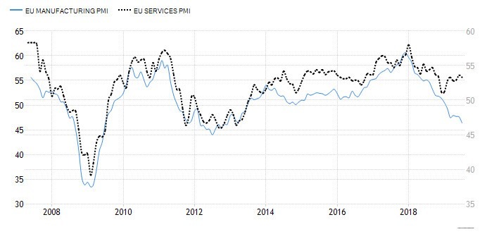 Indeksy PMI dla strefy euro. Źródło: Trading Economics