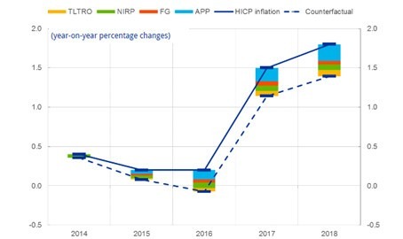 Wpływ narzędzi EBC na inflację – skup aktywów wspierał dynamikę CPI w największym stopniu. Źródło: EBC
