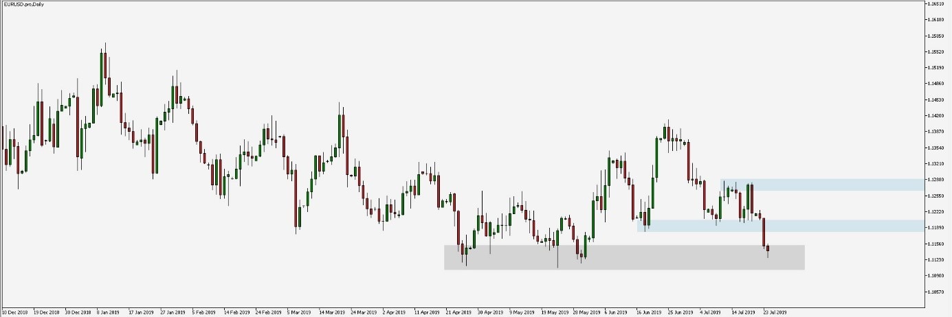 Lipcowe posiedzenie Europejskiego Banku Centralnego, które odbędzie się 25 lipca nie przyniesie jednak naszym zdaniem wiążących decyzji. Uważamy, że Mario Draghi, którego kadencja wygasa na jesieni, wielki finał szykuje na wrzesień. Jutrzejsze posiedzenie będzie zatem swoistą próbą generalną. Rynek będzie chciał dowiedzieć się, po które instrumenty zamierzają sięgnąć władze monetarne. Ich dobór będzie rodzić znaczna zmienność w notowaniach i wpływać na perspektywy EUR/USD.