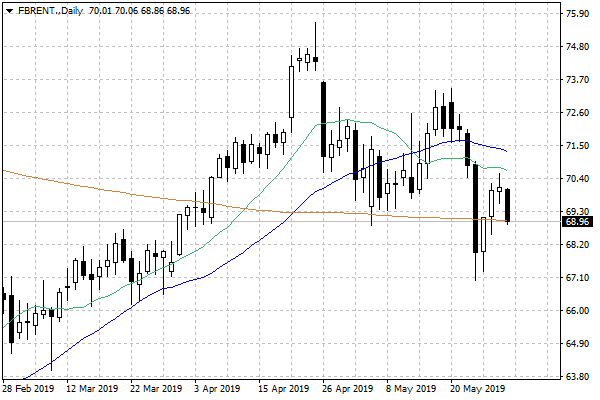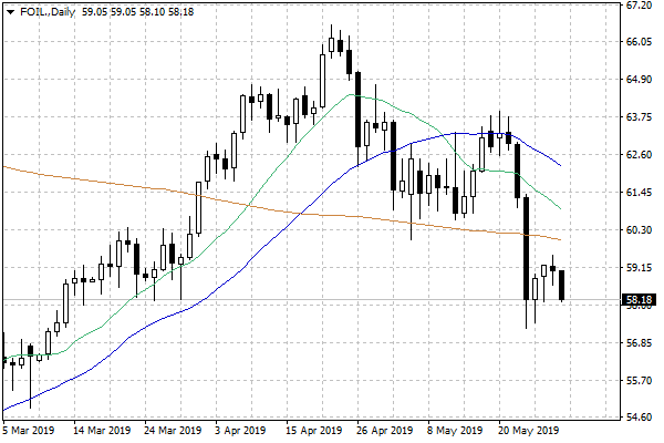 Pesymizm inwestorów, dotyczący przyszłości całej globalnej gospodarki, udziela się inwestorom na rynku ropy naftowej. Popyt na ten surowiec jest bowiem powiązany z koniunkturą na świecie, a wzrost napięć na linii Stany Zjednoczone – Chiny budzi obawy dotyczące globalnego wzrostu gospodarczego.