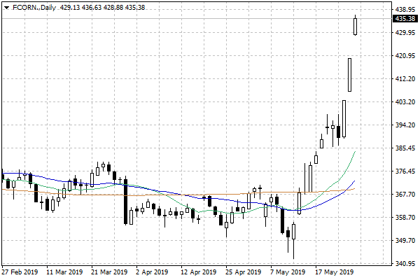 Wczoraj Departament Rolnictwa USA podał, że na koniec poprzedniego tygodnia zasiewy kukurydzy ukończone zostały w 58 procentach, wobec oczekiwań zakładających 63% i pięcioletniej średniej wynoszącej 90%. To już kolejny rozczarowujący wynik, który wpłynął na przyspieszenie ruchu notowań kukurydzy w górę. Biorąc pod uwagę dotychczasowe dane dotyczące tempa zasiewów kukurydzy w USA, tamtejszy spadek podaży tego zboża jest już praktycznie pewny.